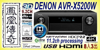 AVR-X5200W 是一款強力的 9 聲道擴大機,具備 11.2 聲道處理以及 13.2 聲道前級輸出。