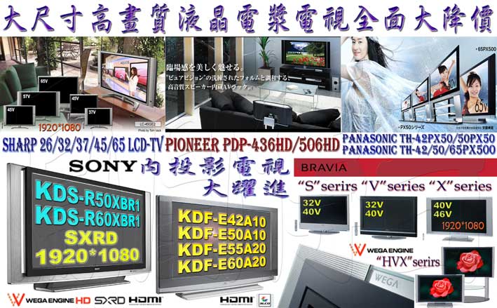 * 買液晶電漿電視投影機找南北鳳誠就對了!! 眾多品牌花花世界, 我們幫您篩選最好的. 篩選過的顯示器材, 透過我們專業師父調整. 才能發揮100%的實力, 否則只是擺好看的!! 歡迎到我們的實體商店體驗真正專業實力. * 本公司接受多家銀行信用卡辦理12-24-36期低利分期付款, 全館現貨商品或代客訂貨進口商品皆免擔保品免保人, 分期費用已含稅無須增加刷卡手續費及徵信等任何額外費用. 一次現金付清另有超低優惠價,詳情請洽本公司台北門市.